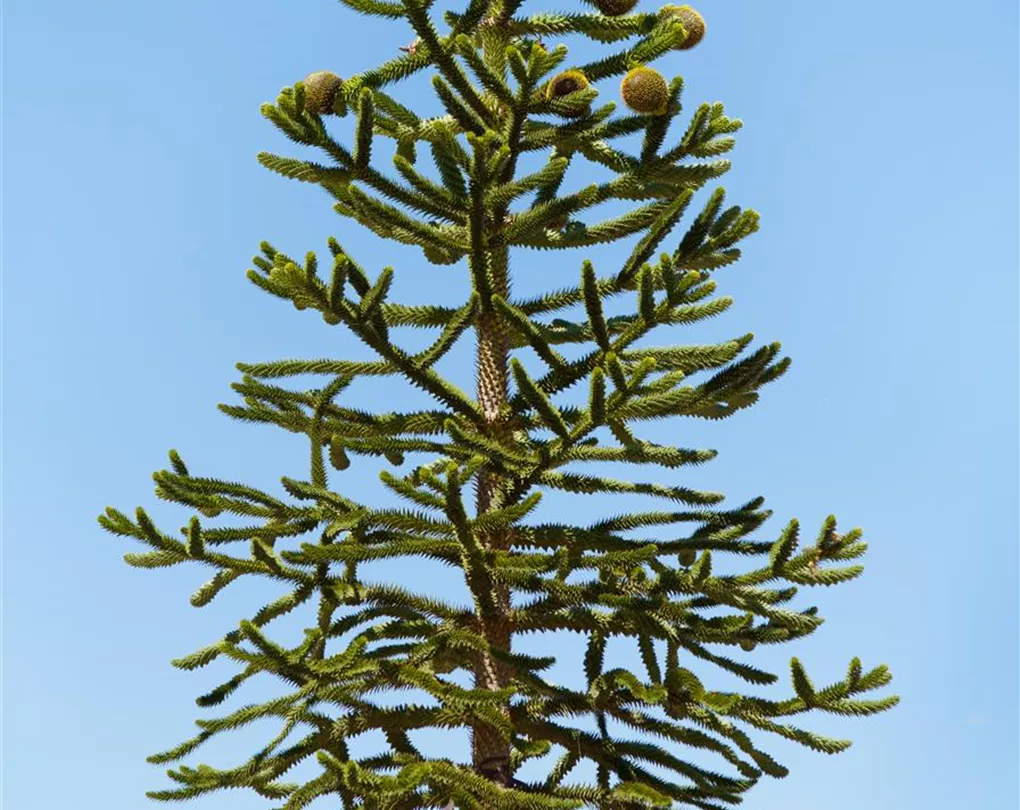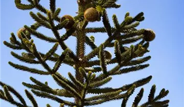 Sehr dekorativ. Die Andentanne ist immergrün. Ihre Nadeln sind dunkelgrün, glänzend, ledrig, dreieckig.