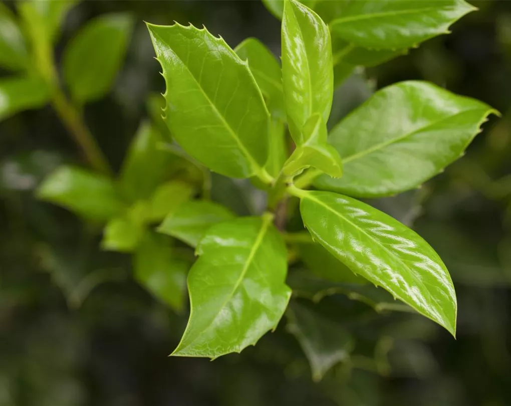 Besonders dekorativ sind die roten Steinfrüchte von Ilex aquifolium 'J.C. van Tol'. Diese erscheinen ab Oktober.Haften sehr lange.