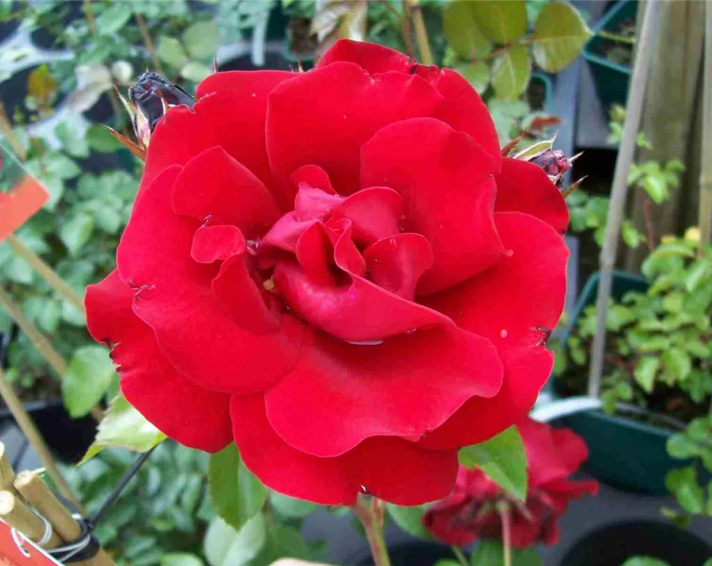 Die Strauchrose 'Red Eden Rose'® (Rosa) ist eine reichblühende Rose, die im Garten eine besondere Rolle spielt. Die zahlreichen gefüllten Blüten sind dunkelrot und erscheinen von Juni bis Oktober. Ihr wunderbarer Duft entfaltet sich besonders an sonnigen, warmen Tagen. Mit den richtigen Begleitern an ihrer Seite, kommt die Königin der Blumen besonders gut zur Geltung. Niedrige Stauden, Lavendel und Salbei eignen sich ganz gut für diese Zwecke.